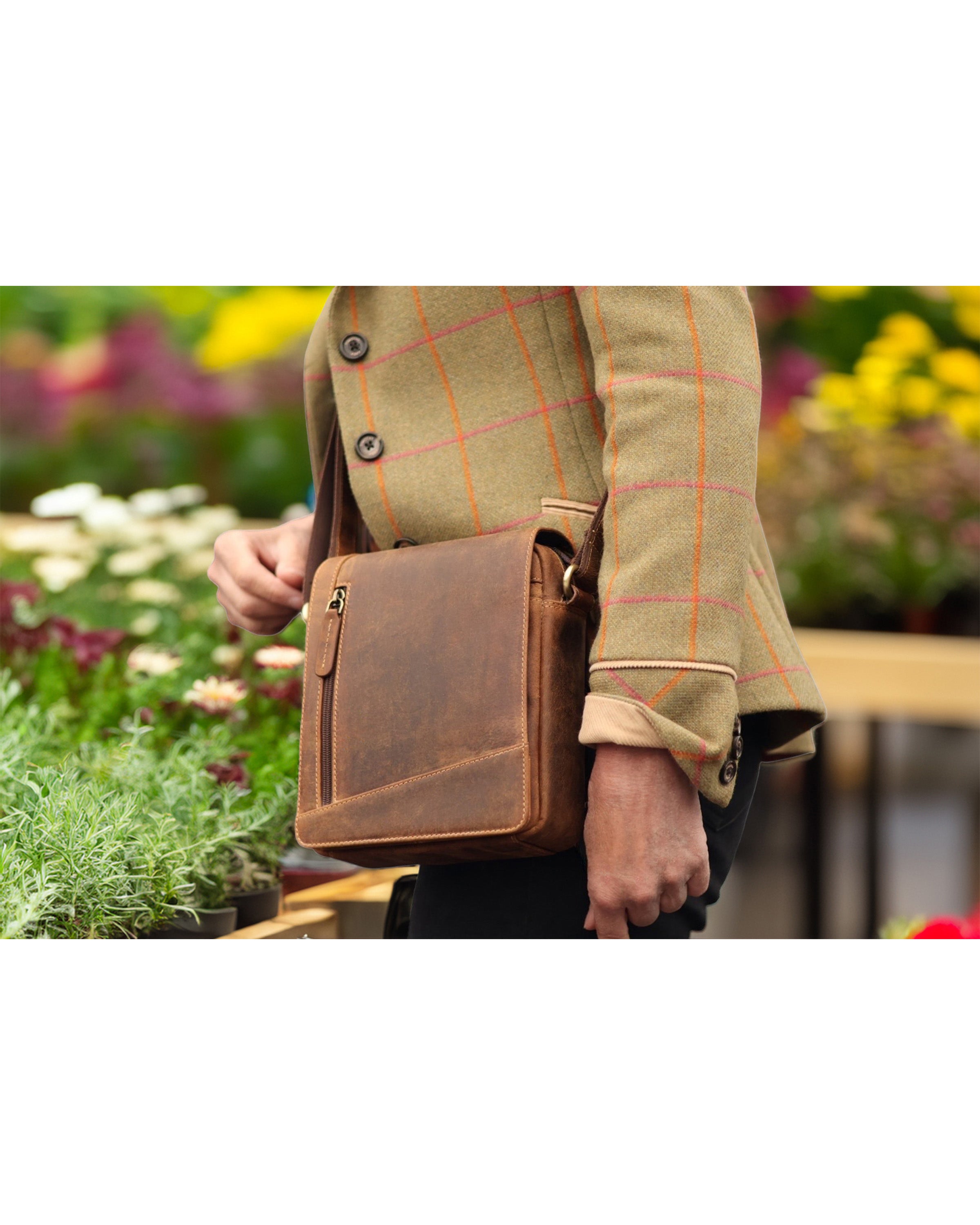 • Additional zipped pockets on the back and under the flap for extra organization