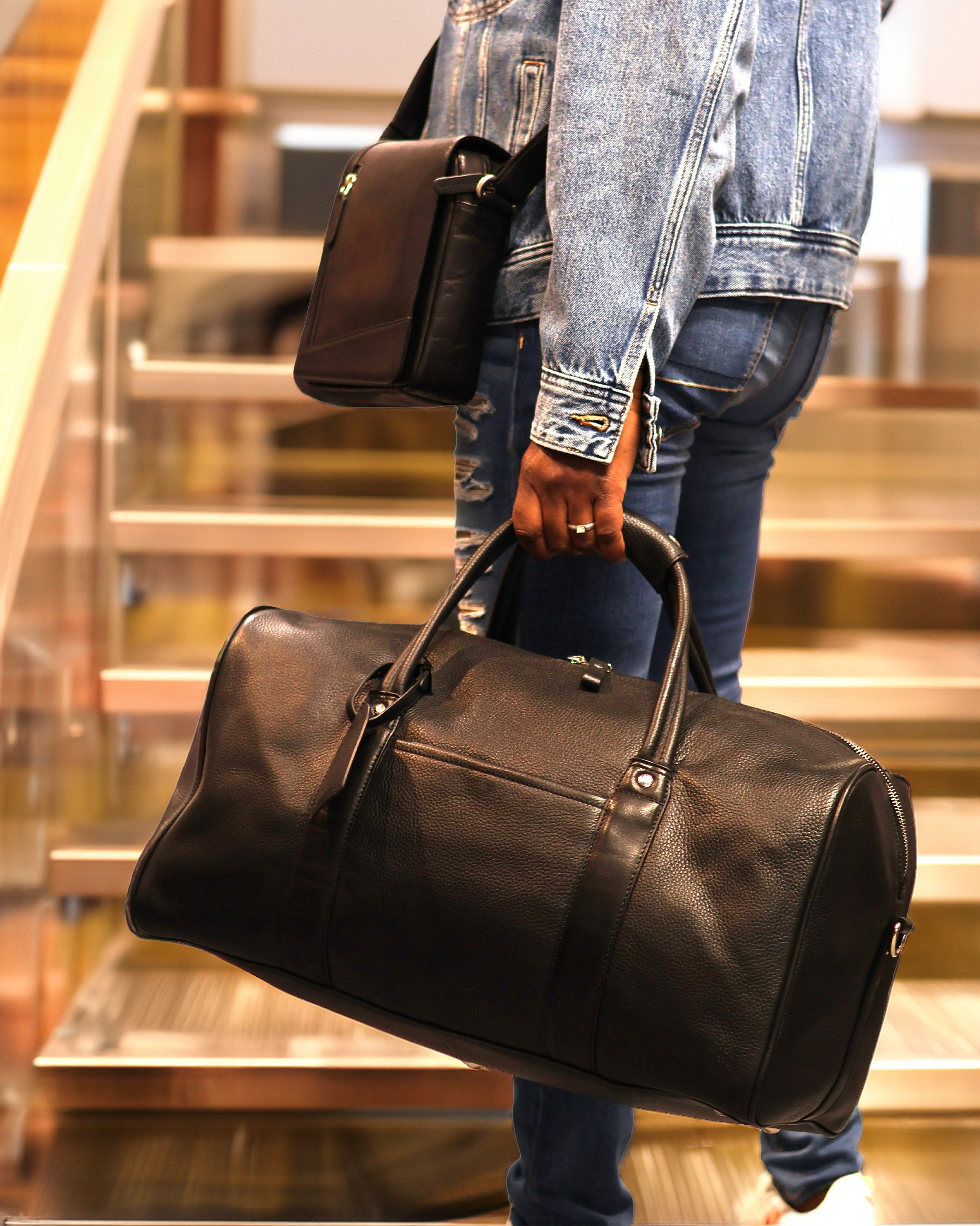 RUEIL is a modern travel bag made from two types of top tier leather ensuring you travel the world distinctively. It combines volume and functionality due to a top closure with a double zipper and an interior designed to compact as many goods as possible.